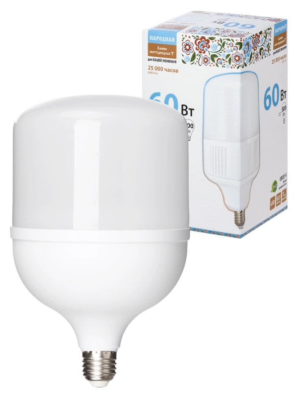 Лампа светодиодная T-60 Вт-230 В-6500 К–E27 (135x225 мм) НАРОДНАЯ