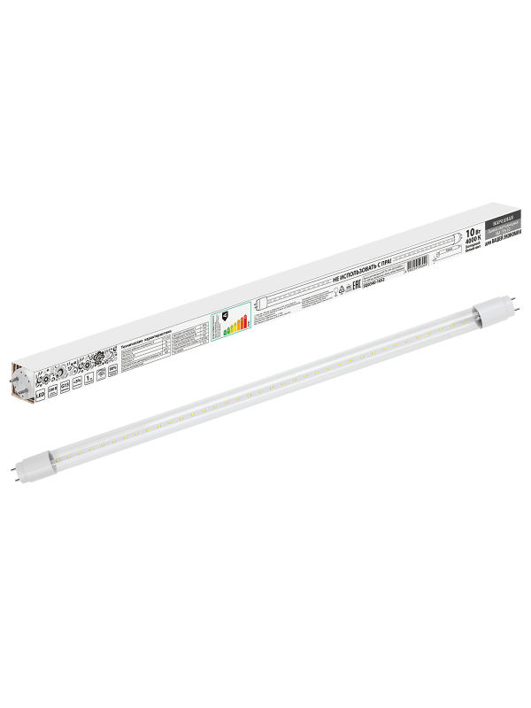 Лампа светодиодная НЛ-Т8-10 Вт-230 В-4000 К–G13, 600 мм, прозрачная, стекло, непов. Народная