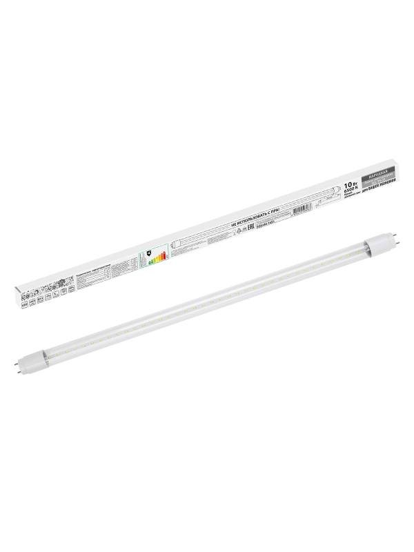 Лампа светодиодная НЛ-Т8-10 Вт-230 В-6500 К–G13, 600 мм, прозрачная, стекло, непов. Народная