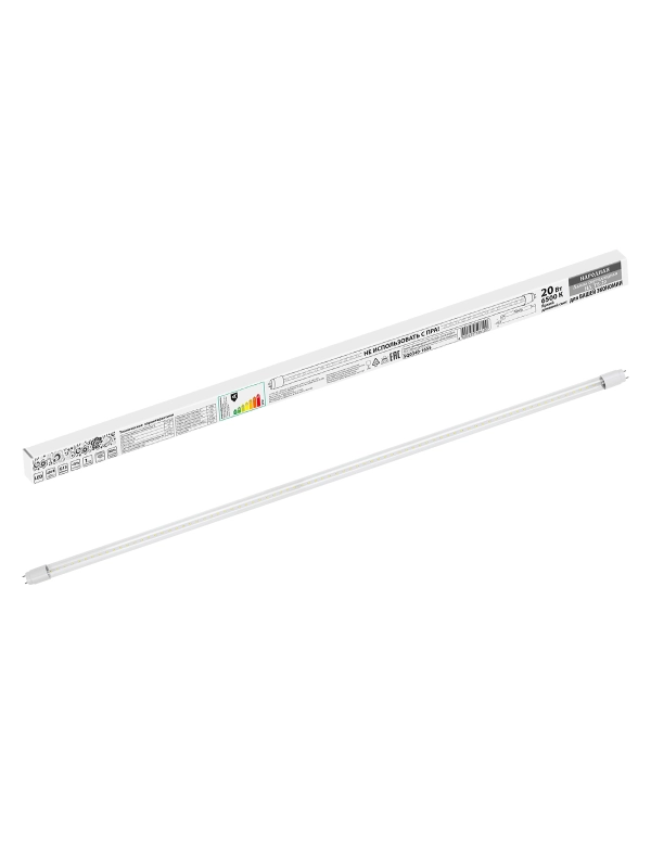 Лампа светодиодная НЛ-Т8-20 Вт-230 В-6500 К–G13, 1200 мм, прозрачная, стекло, непов. Народная