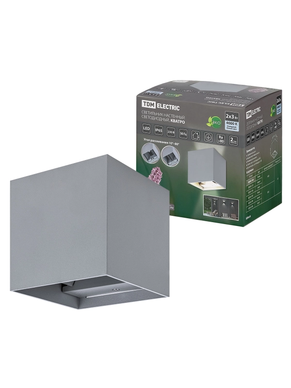 Светильник настенный LED, Кватро, 2х3 Вт, 4000 К, Н100 мм, алюм./сер., вверх/вниз, IP65, TDM