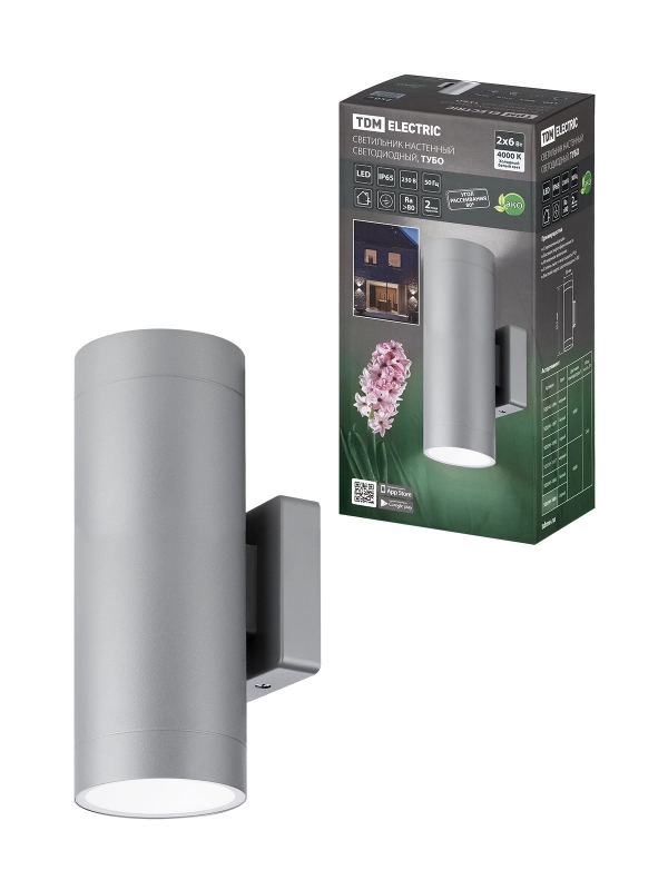 Светильник настенный LED, Тубо, 2х6 Вт, 4000 К, H252 мм, алюм./сер., вверх/вниз, IP65, TDM