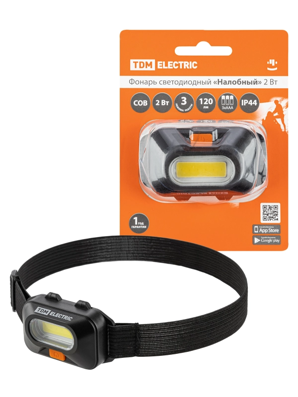 Фонарь светодиодный "Налобный" 2 Вт COB, 120 лм, бат. 3*AAA TDM