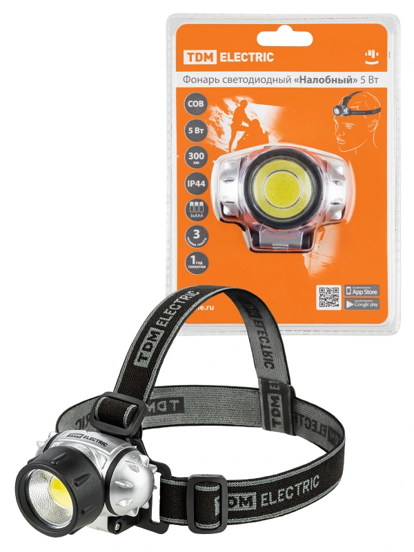 Фонарь светодиодный "Налобный" 5 Вт COB, 300 лм, бат. 3*AAA TDM