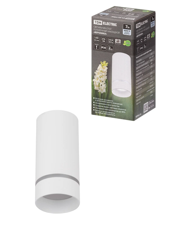 Светильник-спот потолочный накладной LED, 7 Вт, 230 В, 50 Гц, 4000К, IP20, "Вероника", белый, TDM