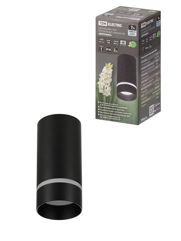 Светильник-спот потолочный накладной LED, 7 Вт, 230 В, 50 Гц, 4000К, IP20, "Вероника", черный, TDM
