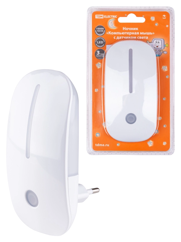 Ночник "Компьютерная мышь" с датчиком света, светодиодный, 0,5Вт, 220 В TDM