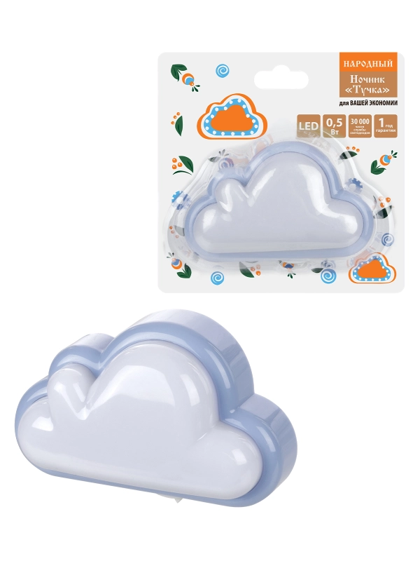 Ночник "Тучка" с выключателем, 0,5 Вт, 220 В Народный