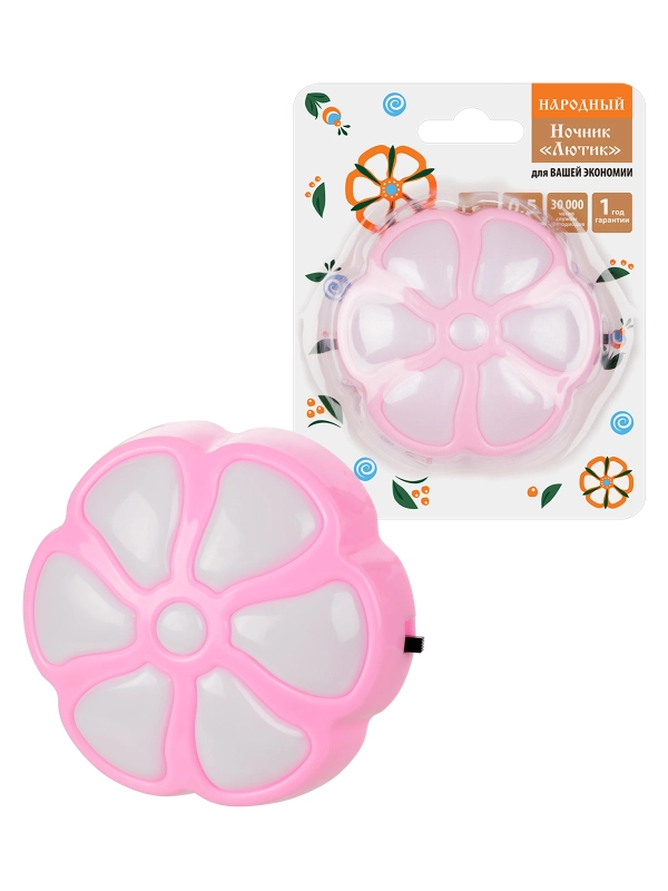 Ночник "Лютик" с выключателем, 0,5 Вт, розовый, 220 В Народный