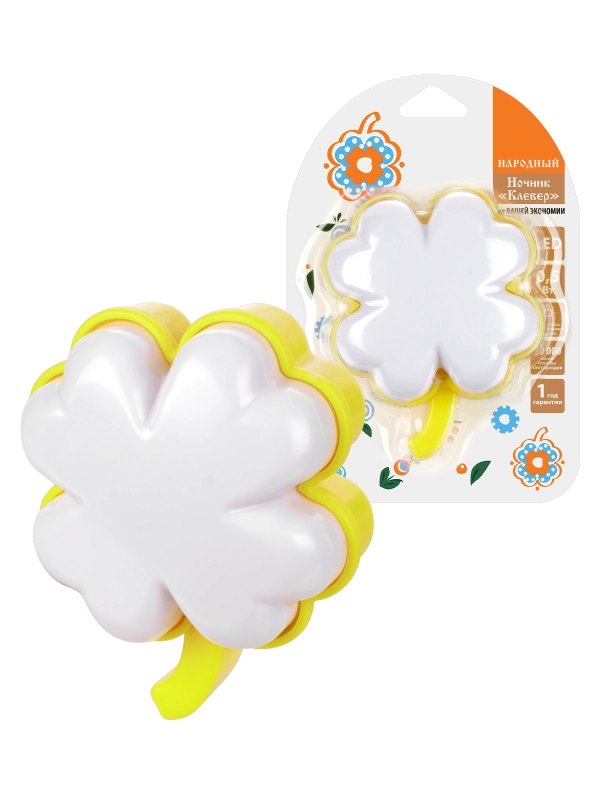 Ночник "Клевер" с датчиком освещенности, 0,5 Вт, желтый, 220 В Народный