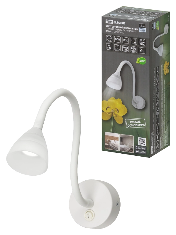 Спот на гибком основании СГС-01, 3 Вт, COB, 270 лм, 4000 K, IP20, "Лантана", c выкл., белый, TDM