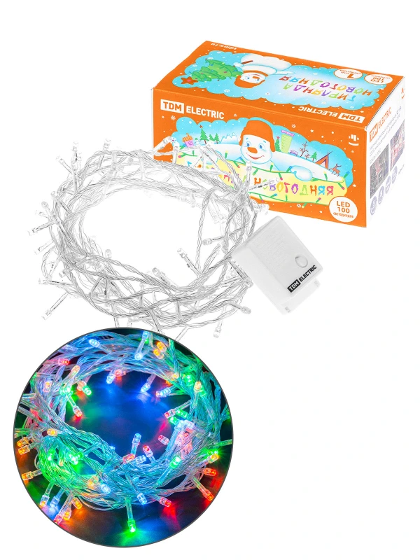 Гирлянда новогодняя светодиодная, СГ 100, 220 В, многоцветная, 5 м, 8 режимов TDM
