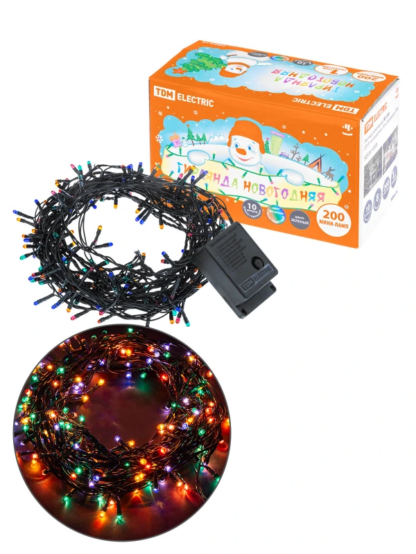Гирлянда новогодняя, МГ 200, 220 В, многоцветная, 10 м, 8 режимов TDM