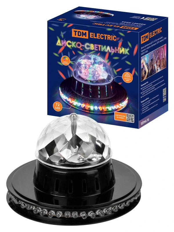 Диско-светильник ДС-01, 4,5 Вт, многоцвет., горизонт. и вертик. проекции, 220 В, черный, TDM