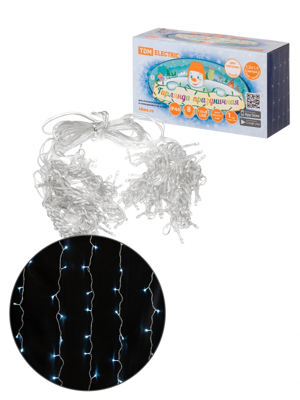 Гирлянда новогодняя "Занавес" 1,5х1,5 м, белый свет, 8 режимов, наружное использование, IP44, TDM
