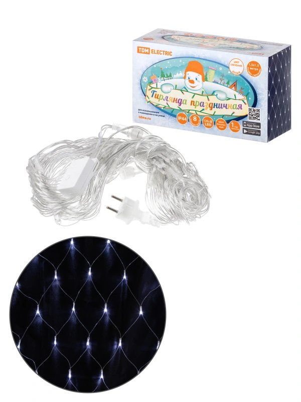 Гирлянда новогодняя "Сеть" 1,5х1,5 м, белый свет, 8 режимов, наружное использование, IP44, TDM