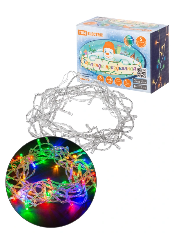 Гирлянда светодиодная СГ50M5, многоцвет., 5м, 8 режимов, 250 В, TDM