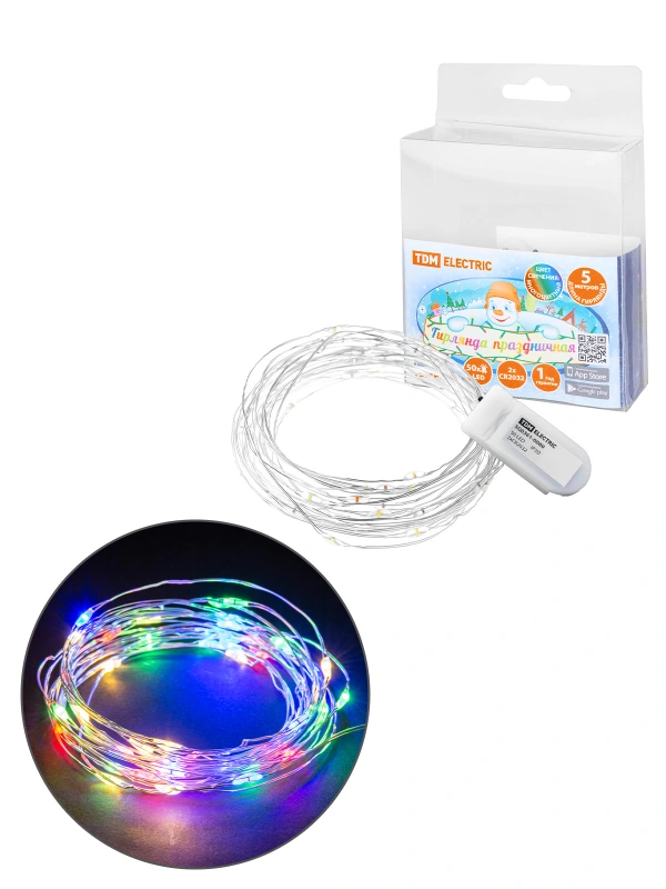 Гирлянда светодиодная "Роса50" 50LED, 5м, многоцвет., 2хCR2032 , TDM