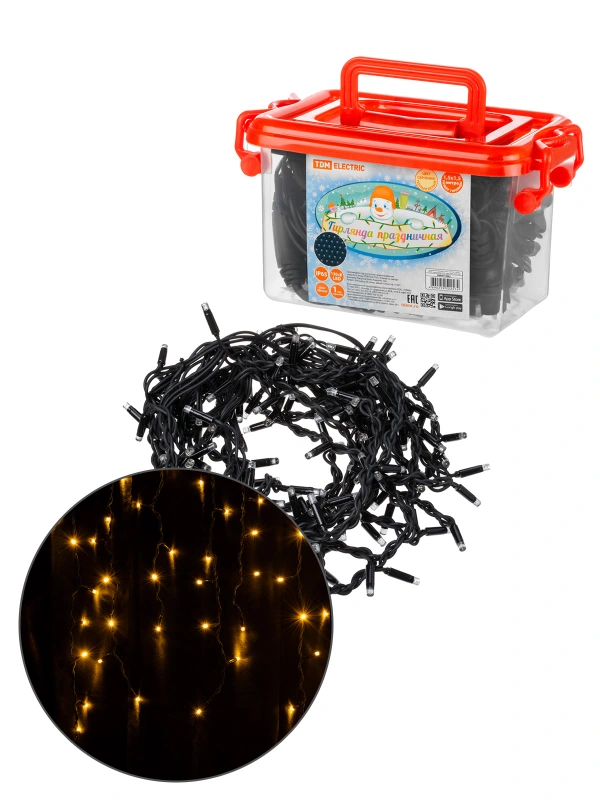 Гирлянда светодиодная "Бахрома" 2х1м, 152LED, 2700К, черный шнур, посл. подкл, IP65, 250 В, TDM