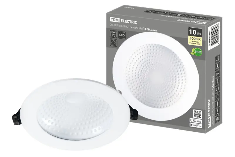 Светильник встраиваемый LED Деко 05, 10 Вт, 3000K, кругл, D170 мм, белый, IP44, TDM