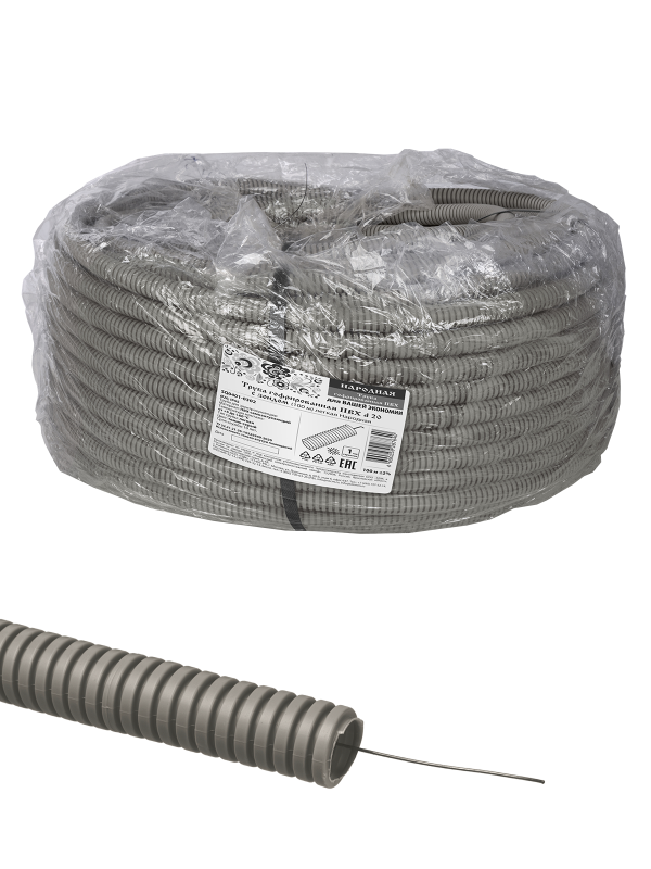 Труба гофрированная ПВХ d 20 с зондом (100 м) легкая Народная