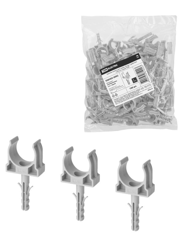 Крепеж-клипса для трубы 20 мм с дюбелем (100 шт.) серая TDM