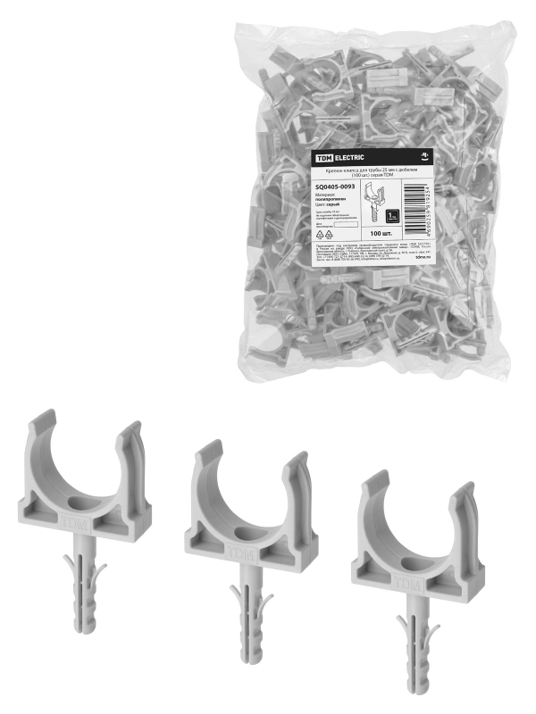 Крепеж-клипса для трубы 25 мм с дюбелем (100 шт.) серая TDM