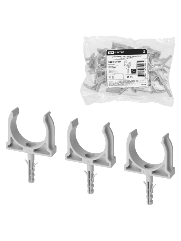 Крепеж-клипса для трубы 32 мм с дюбелем (25 шт.) серая TDM