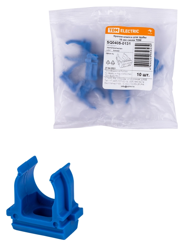Крепеж-клипса для трубы ПНД 16 мм (10 шт.) синяя TDM