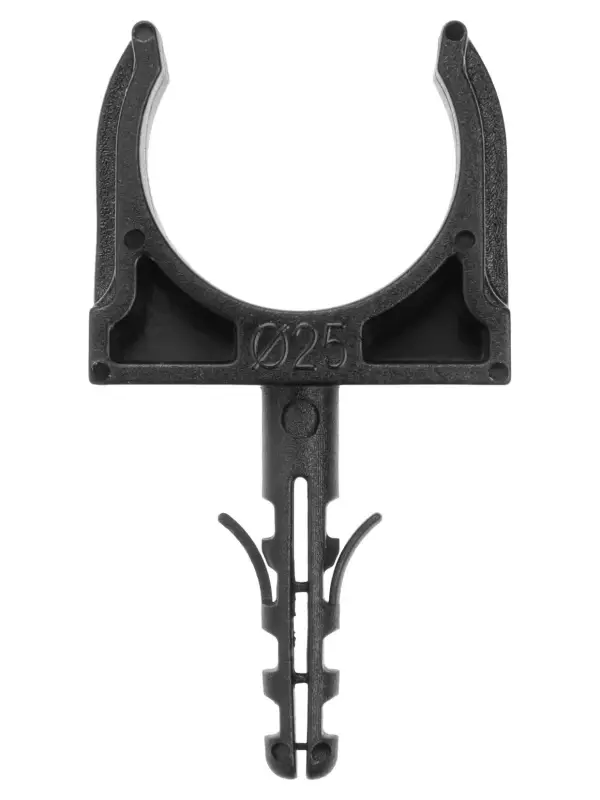 Крепеж-клипса для трубы 25 мм с дюбелем (100 шт.) черная TDM