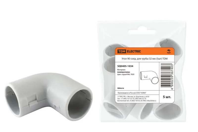 Угол 90 соед. для трубы 32 мм (5шт) TDM