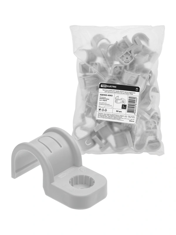Крепеж-скоба для трубы 20 мм односторонняя для прямого монтажа (50 шт.) серая TDM