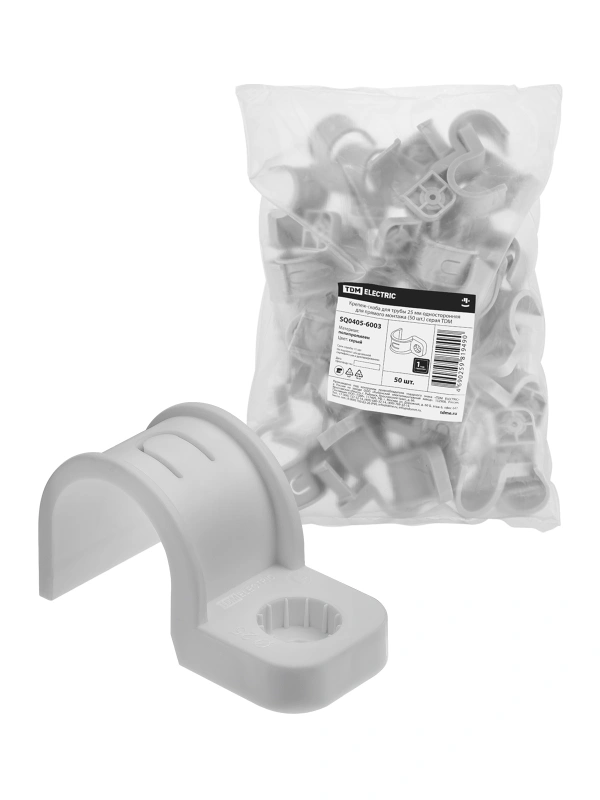 Крепеж-скоба для трубы 25 мм односторонняя для прямого монтажа (50 шт.) серая TDM