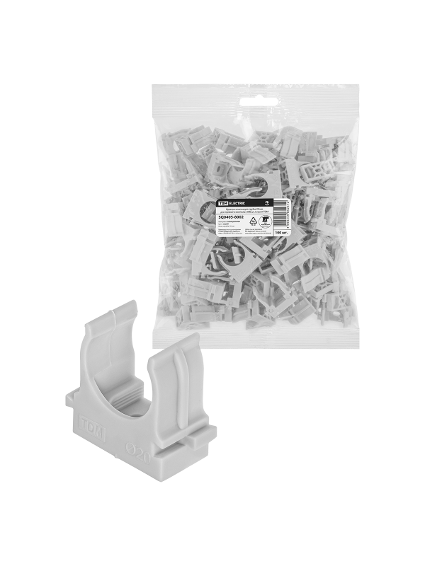 Крепеж-клипса для трубы 20 мм для прямого монтажа (100 шт.) серая TDM