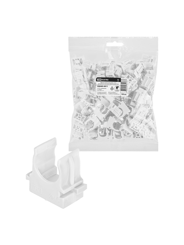 Крепеж-клипса для трубы 16 мм для прямого монтажа (100 шт.) белая TDM