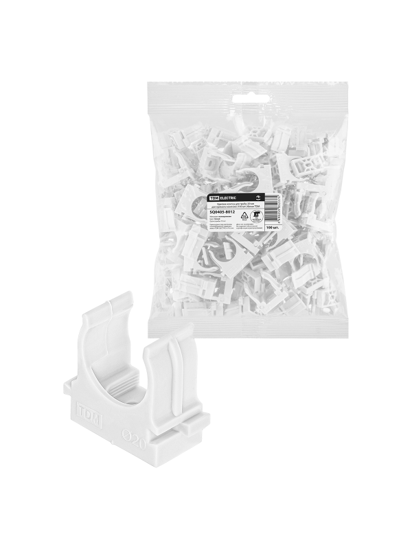 Крепеж-клипса для трубы 20 мм для прямого монтажа (100 шт.) белая TDM