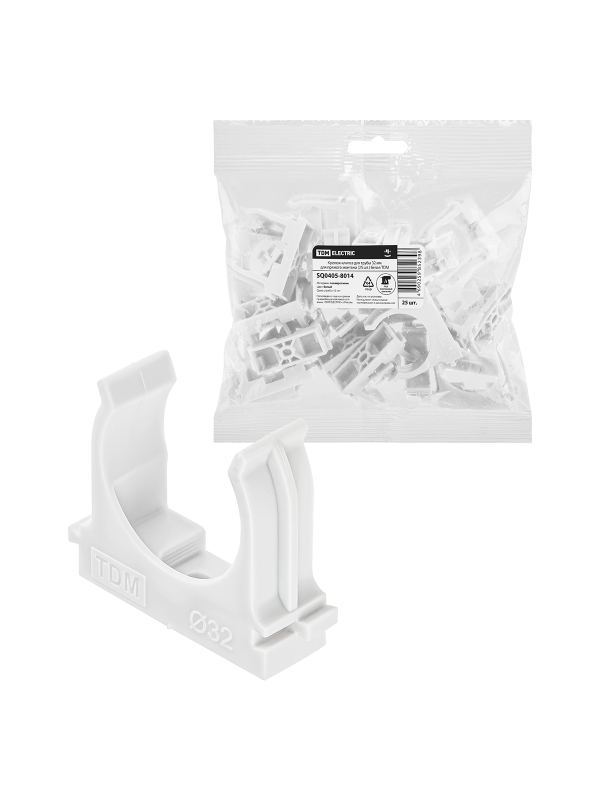 Крепеж-клипса для трубы 32 мм для прямого монтажа (25 шт.) белая TDM