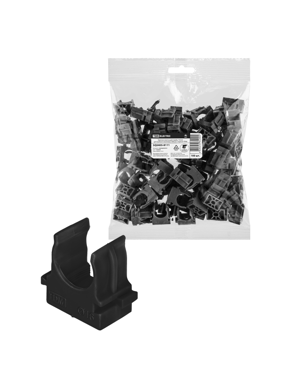 Крепеж-клипса для трубы 16 мм для прямого монтажа (100 шт.) черная TDM