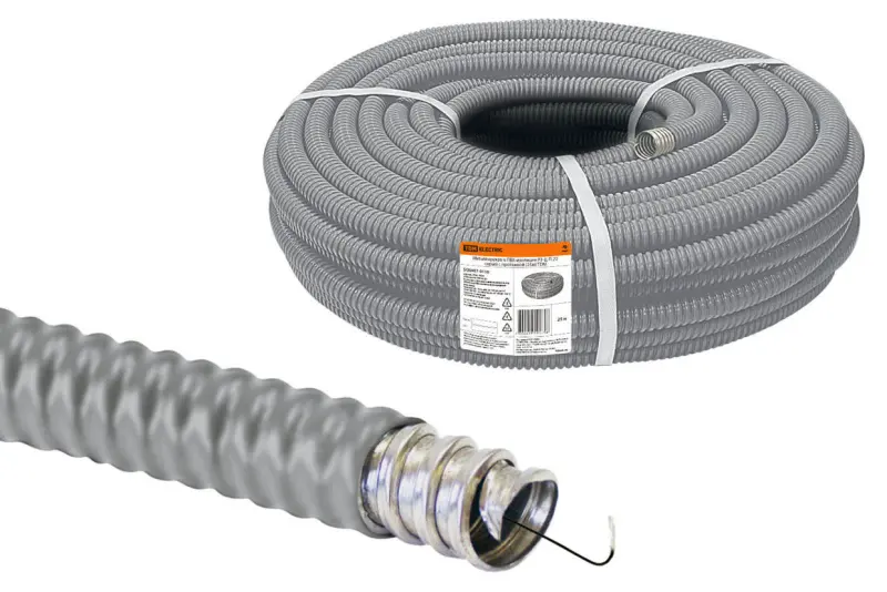 Металлорукав в ПВХ-изоляции РЗ-Ц-П 22 серый с протяжкой (25м) TDM