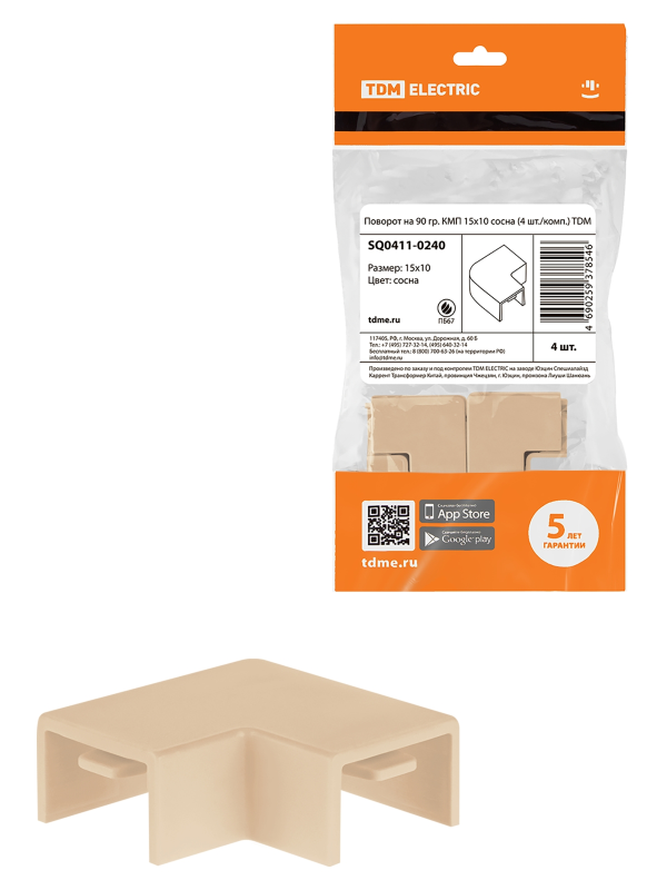 Поворот на 90 гр. КМП 15х10 сосна (4 шт./комп.) TDM