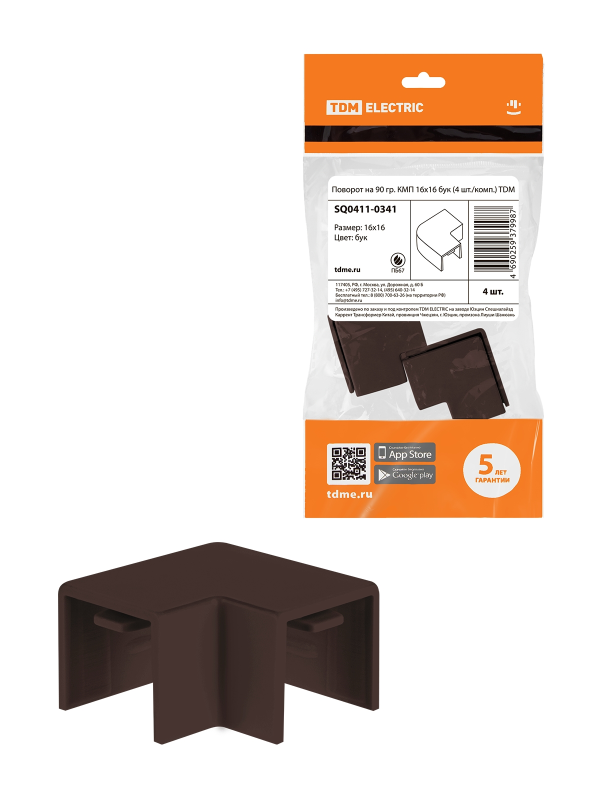 Поворот на 90 гр. КМП 16х16 бук (4 шт./комп.) TDM