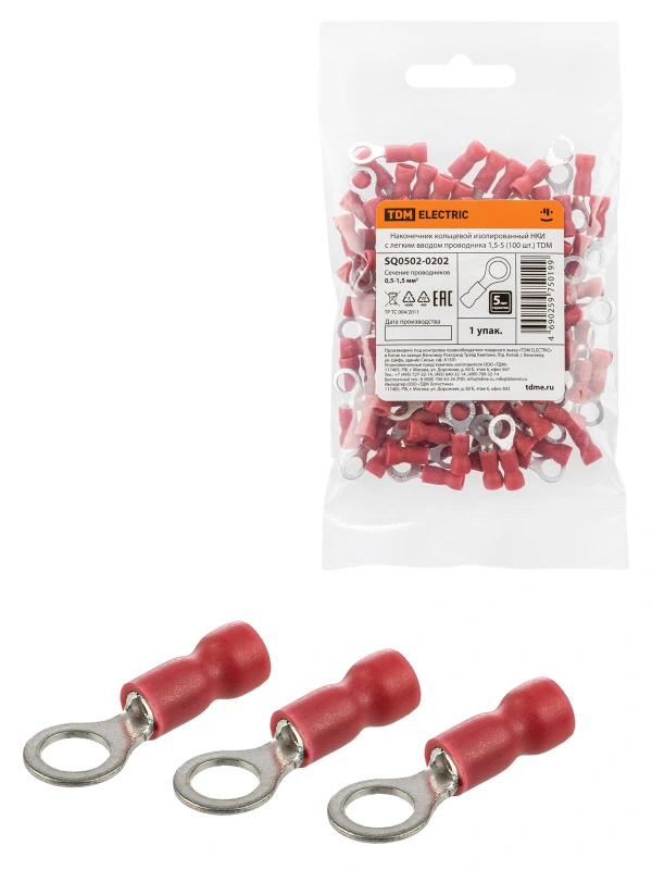 Наконечник кольцевой изолированный НКИ с легким вводом проводника 1,5-5 (100 шт.) TDM