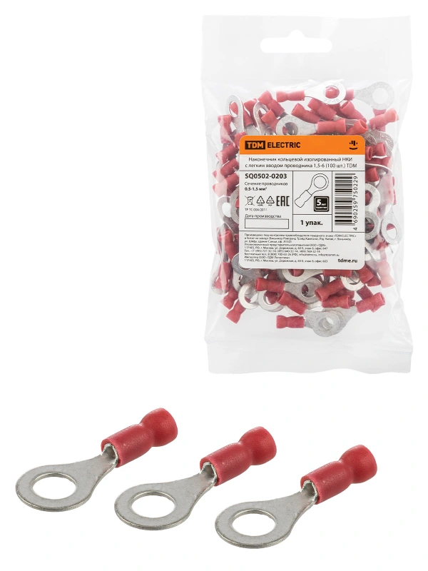 Наконечник кольцевой изолированный НКИ с легким вводом проводника 1,5-6 (100 шт.) TDM