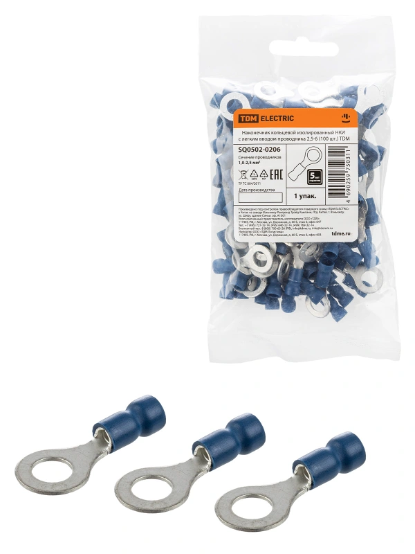 Наконечник кольцевой изолированный НКИ с легким вводом проводника 2,5-6 (100 шт.) TDM