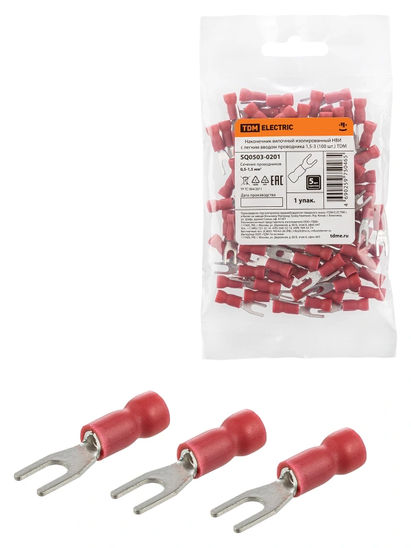 Наконечник вилочный изолированный НВИ с легким вводом проводника 1,5-3 (100 шт.) TDM