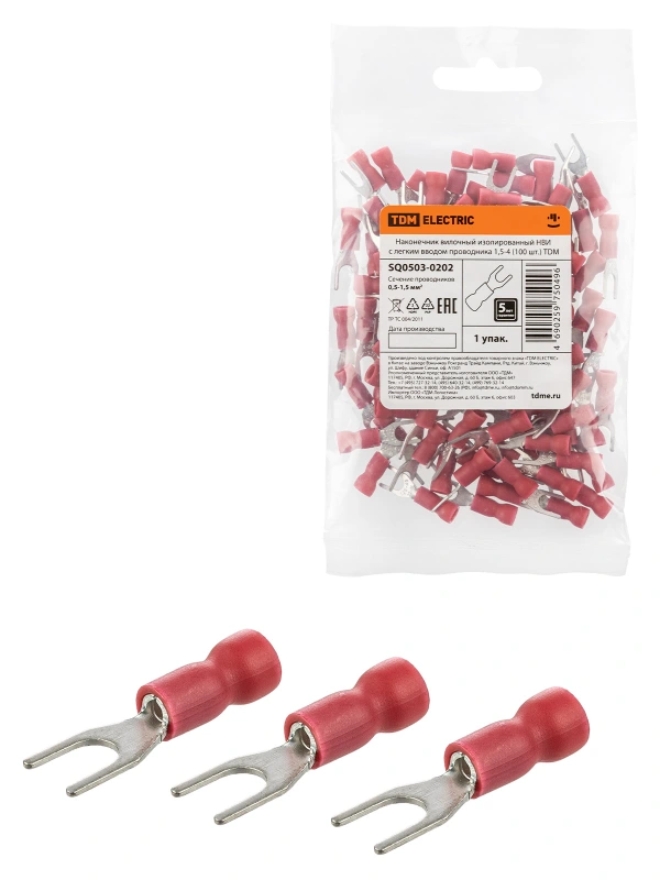 Наконечник вилочный изолированный НВИ с легким вводом проводника 1,5-4 (100 шт.) TDM