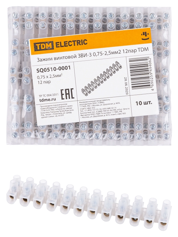 Зажим винтовой ЗВИ-3 0,75-2,5мм2 12пар TDM