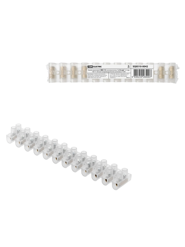 Зажим винтовой ЗВИ-10 полипропилен 1,5-6мм2 12пар 100°С белый (индивидуальная упаковка) TDM