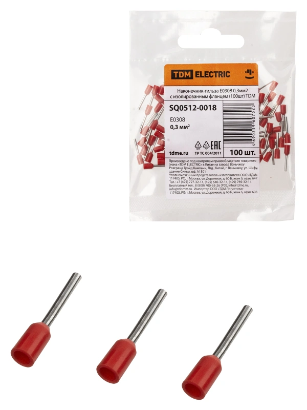 TDM Наконечник-гильза Е0308 0,3мм2 с изолированным фланцем (100шт)