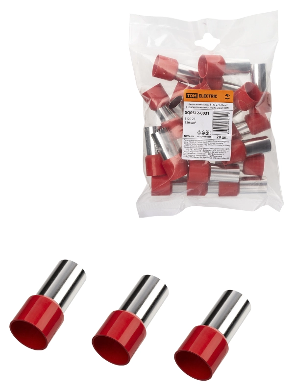 TDM Наконечник-гильза Е120-27 120мм2 с изолированным фланцем (20шт)